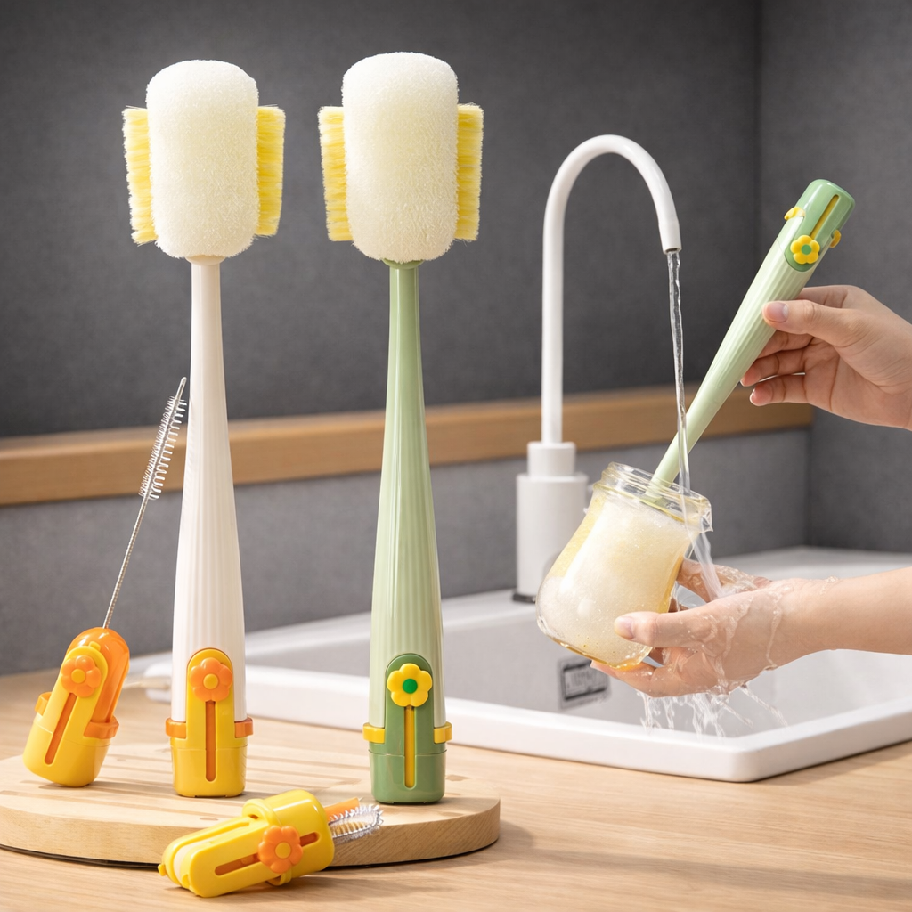🧽 Sponge Brush – Scrubs bottle sides, corners & bottoms with ease
